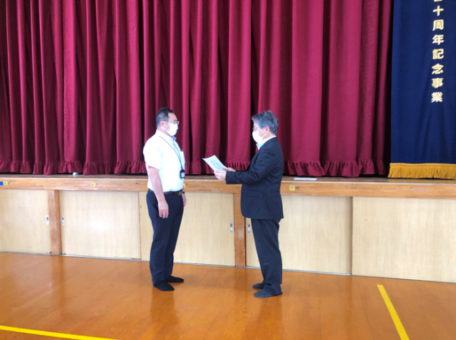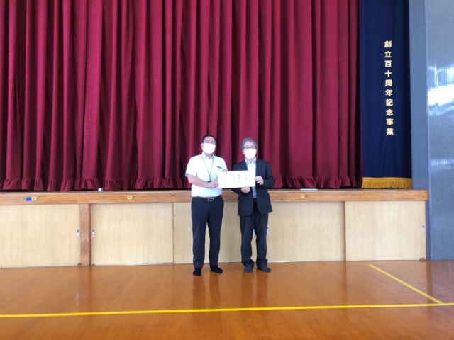 創立110周年記念事業の一つ、体育館の緞帳の新調及び設置を7月28日に終え、