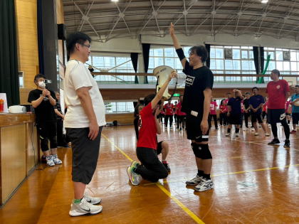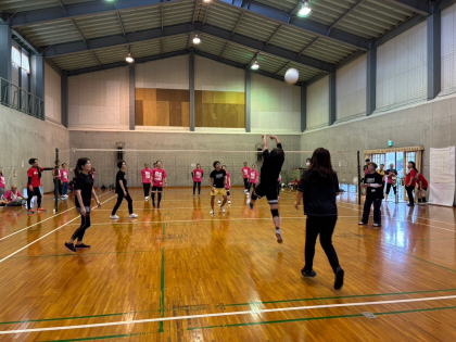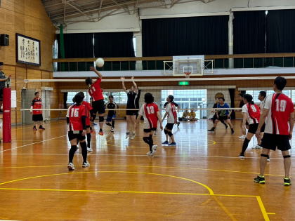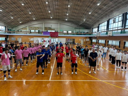 同窓会12チーム、PTA1チームの参加で大いに盛り上がり、久しぶりのバレーボール大会を楽しみました。