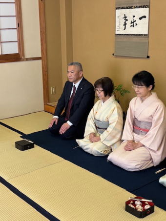 校庭のさくらが満開の中、北高会館にて「さくら茶会」が開催されました。