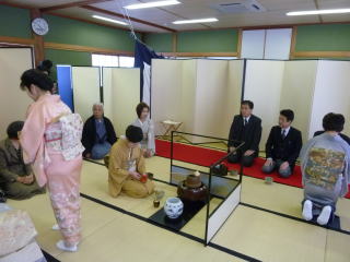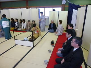参加者はお茶を楽しんだり、見ごろを迎えた桜を見ながら、