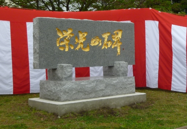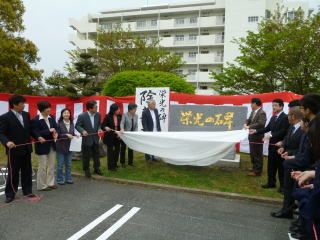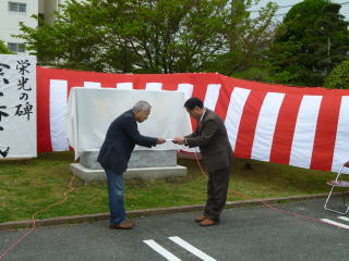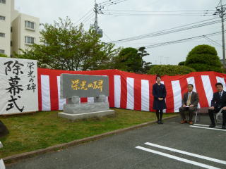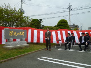 全国優勝した書道部と放送部の栄誉をたたえる「栄光の碑」の除幕式が行われました。