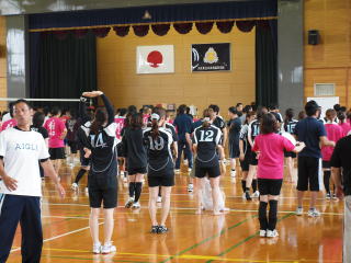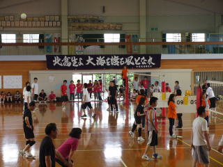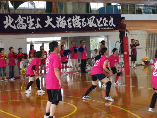 | 平成24年7月1日(日) 中津北高体育館において、中津北高飛躍の会主催のミニバレーボール大会が開催されました。 当日は、生徒会チーム・教職員保護者チーム・各回生の同窓会チーム等25チームの参加があり、 大変盛り上がった1日となりました。 |