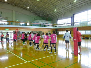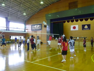 | 平成25年6月30日(日) 中津北高体育館において、中津北高飛躍の会主催のミニバレーボール大会が開催されました。 当日は、生徒会チーム・教職員保護者チーム・各回生の同窓会チーム等22チームの参加があり、 大変盛り上がった1日となりました。 |