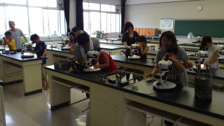 当日は、約150名の参加があり、おもしろ実験の体験や手作りおもちゃの制作、顕微鏡を使った色々なものの観察など、遊びながら理科や科学の楽しさを学ぶことが出来き、子供たちは初めての体験に興味津々でした。
