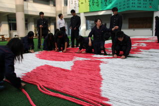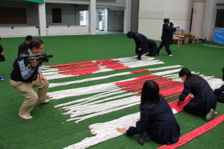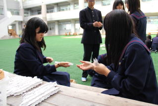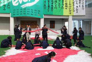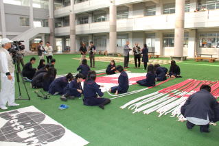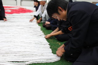 折鶴をつなげた長さは2092メートル。ギネス記録に登録申請するとともに、学校に展示後、年明けに震災復興の募金活動の際に配る予定です。