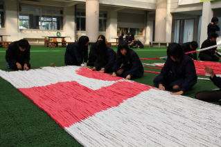創立100周年を記念した取組みの一環として、折鶴を一つにつなげた長さのギネス記録に挑戦しました。