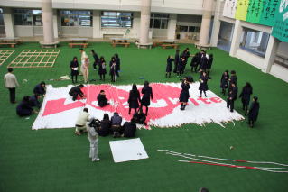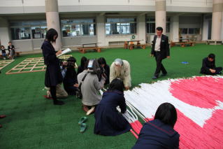 糸で一つにつなげた折鶴からは、『レッツ ユナイト』(日本語で「つながろう」の意味)の文字が浮かび上がるモザイク画が完成しました。