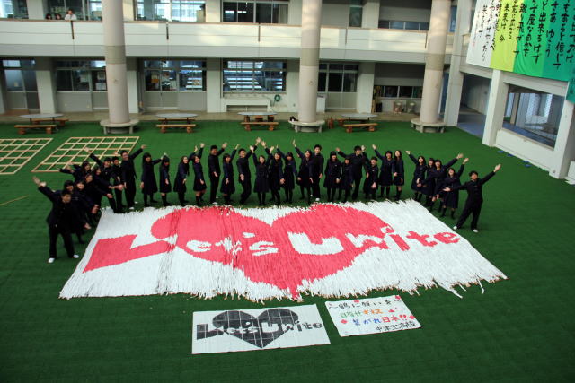 折鶴は約3ヵ月半かけて、生徒・PTA・同窓会・地域住民が東日本大震災犠牲者への追悼の意をこめて一羽ずつ折ったものです。