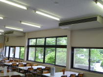 学生達は、毎年夏は大変な暑さと湿気の中、また冬はストーブのない環境下で食事をしており、その為以前より保護者また教職員より空調設備を同窓会に依頼されておりましたが予算がなく現在に至っておりました。