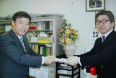 | ■ 矢口 前校長先生、中尾校長先生より募金をいただきました |